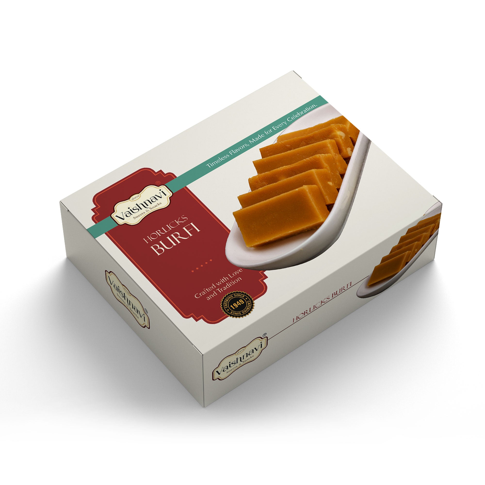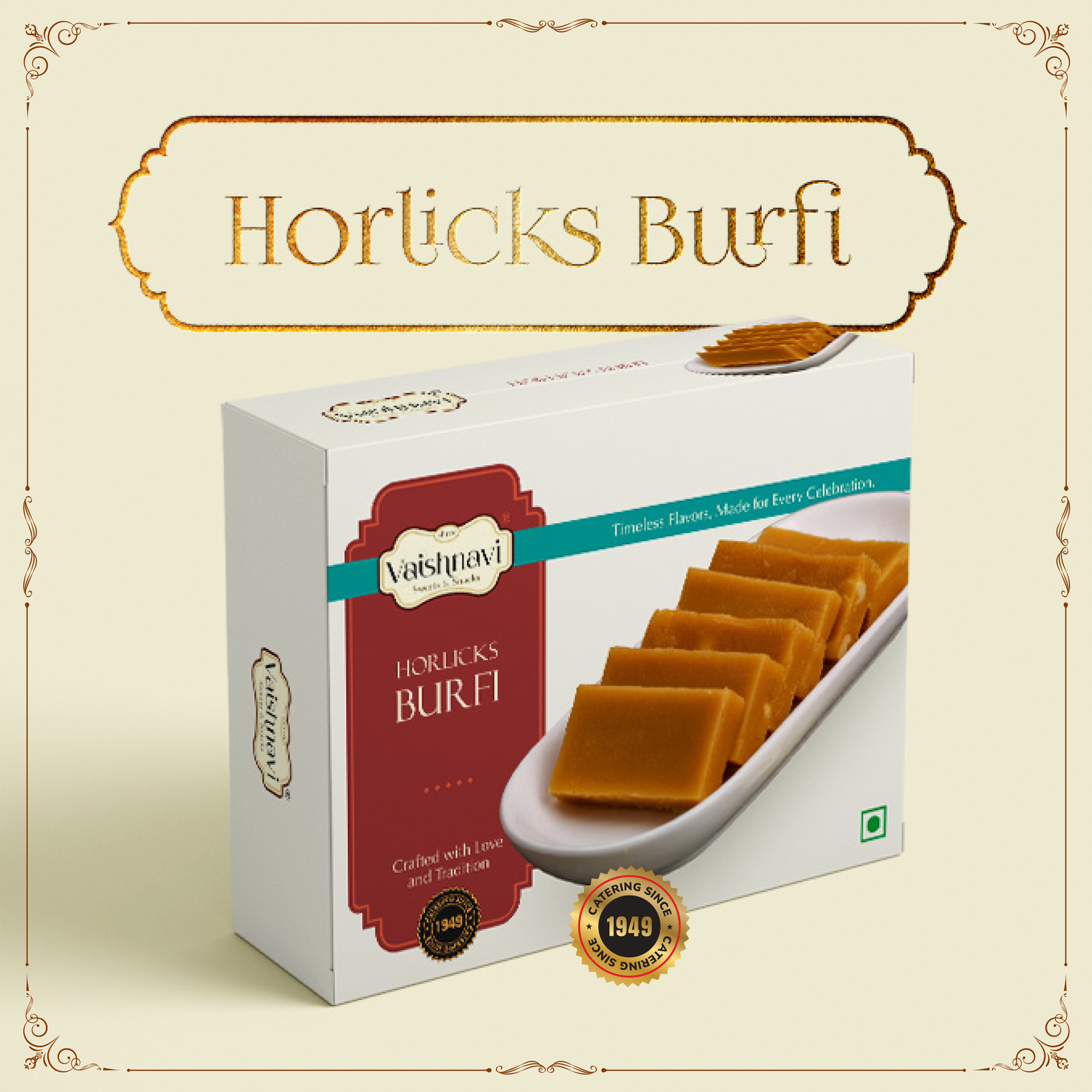 Buy South Indian Sweets Online - Indulge in the exquisite taste of Horlicks Burfi, a delectable Indian dessert meticulously crafted with high-quality ingredients. This luxuriously creamy confection is ideal for special occasions or as a delightful treat during any time of day. Elevate your South Indian Sweets culinary experience by placing an order for these sweets online today and savor the harmonious blend of flavors. Buy South Indian Sweets Online, buy sweets online, order sweets online.
